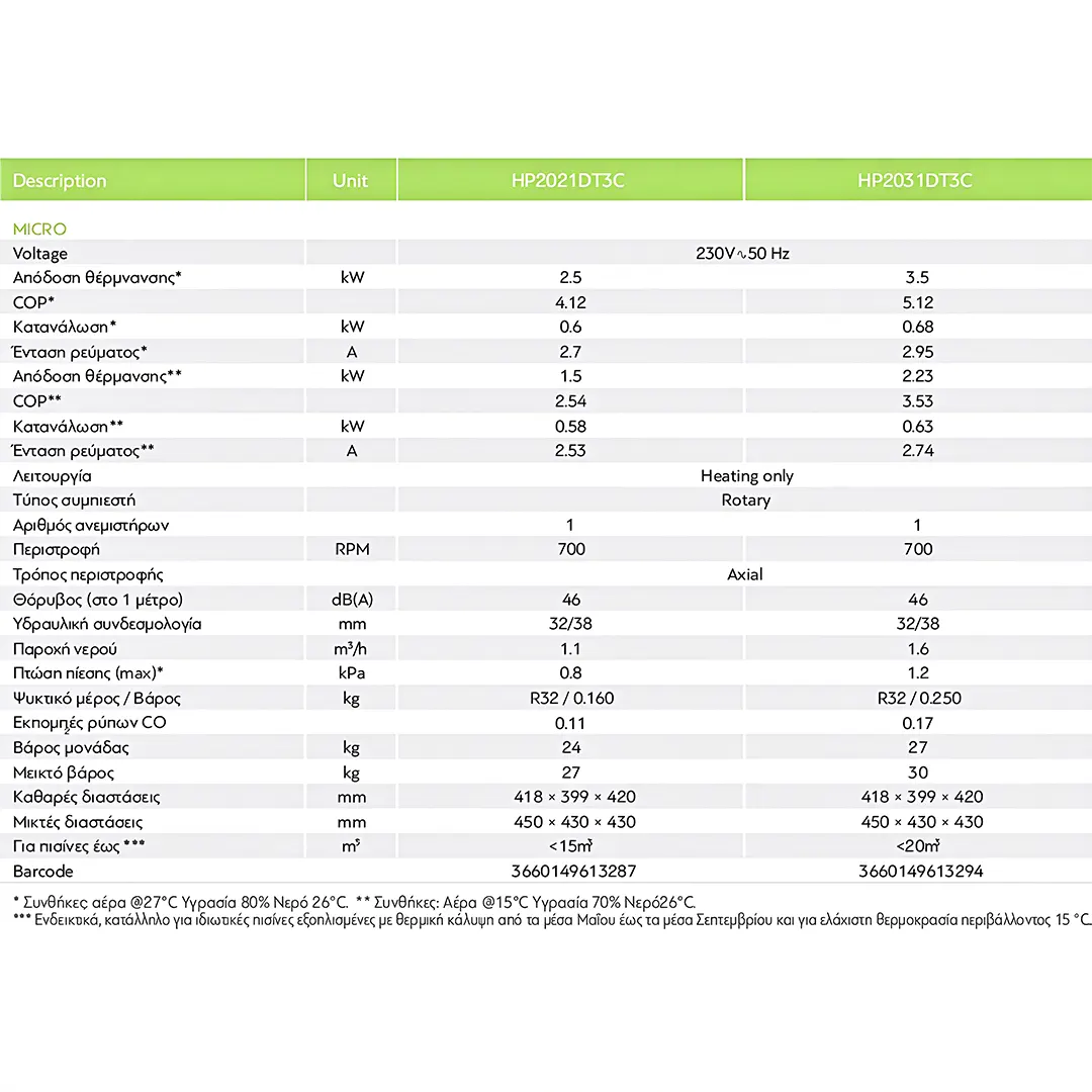 Αξιοποιώντας την ενέργεια του εξωτερικού αέρα, η αντλία θερμότητας προσφέρει οικονομική και φιλική προς το περιβάλλον θέρμανση, χωρίς καυσαέρια ή ανάγκη αποθήκευσης καυσίμων. Η ισχύς των 3,5kW είναι ιδανική για μικρού όγκου εφαρμογές, εξασφαλίζοντας σταθερή θερμοκρασία νερού και άνεση στη χρήση.
