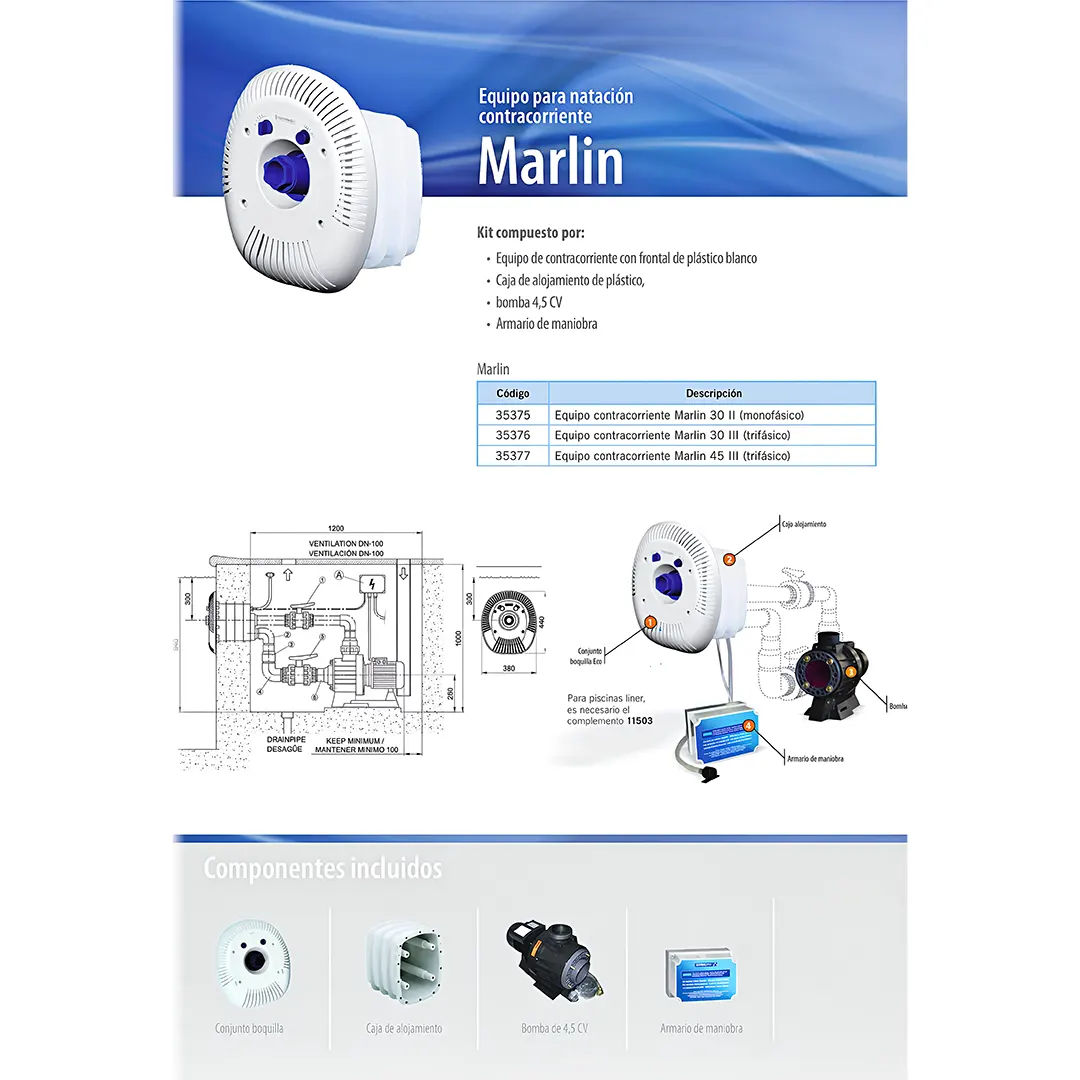 Astralpool Κομπλέ σύστημα αντίθετης κολύμβησης 4,5 HP τριφασικό.