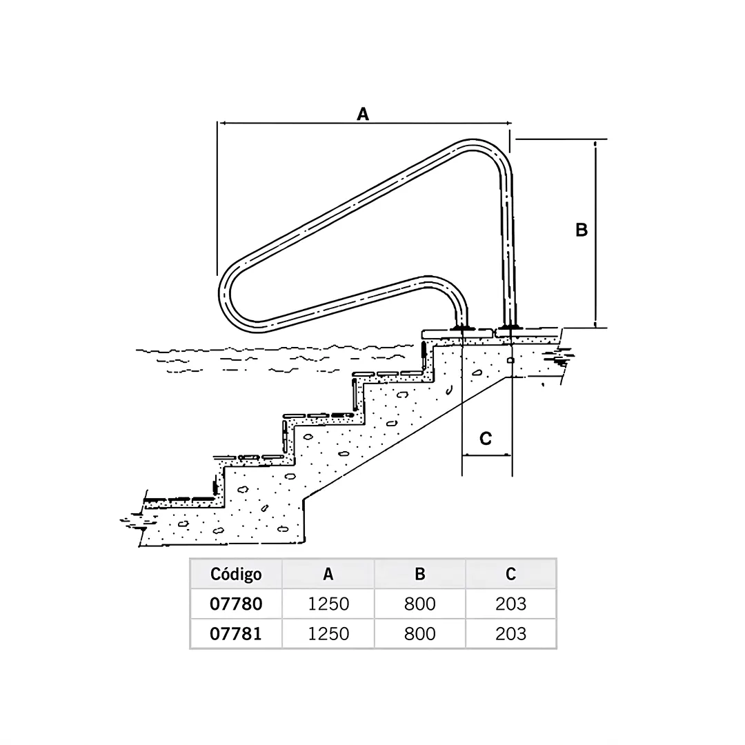 Η χειρολαβή εξόδου από πισίνα είναι μια ανθεκτική και λειτουργική λύση. Εγκαθίσταται στο άκρο της πισίνας, δίνοντας τη δυνατότητα στους κολυμβητές να εξέρχονται από το νερό με άνεση και ασφάλεια.